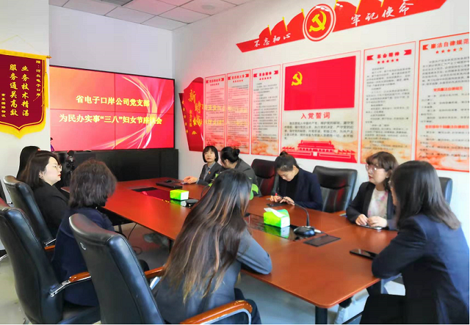 浓情三月,春意盎然。为了庆祝第112个国际劳动妇女节的来临,更好的关爱女职工,3月8日上午,省电子口岸党支部组织开展为民办实事“三八”妇女节座谈活动,公司相关领导出席座谈会。